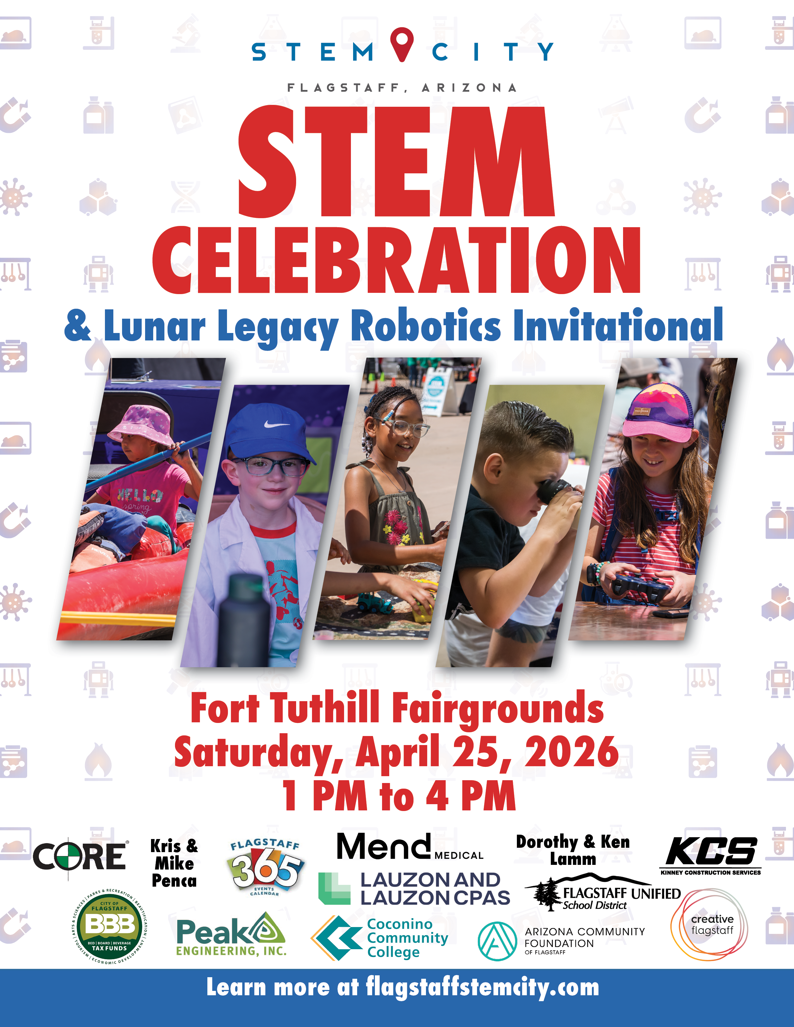 April 20, 2026Join us for the 2026 Flagstaff Community STEM Celebration on Saturday, April 25, 2026, from 1 PM to 4 PM at Fort Tuthill Fairgrounds! This year’s event will be held in partnership wit...